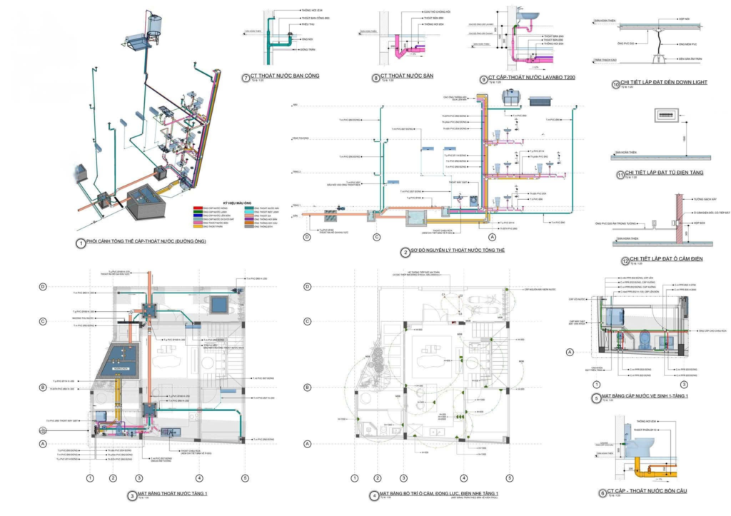 - 💧 Hệ thống cấp – thoát nước: cấp nước sinh hoạt, thoát sàn, bể chứa, chống thấm.