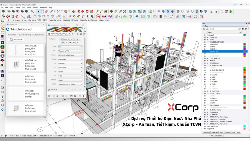 Dịch vụ thiết kế điện nước dân dụng của XCorp bao gồm đầy đủ các hạng mục: